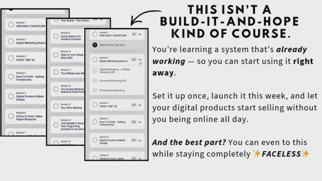 ✔️ Digital Marketing Basics-Understand how digital products, affiliate offers, faceless and AI content actually work — so you can choose a model that fits your lifestyle.(Value-$47)